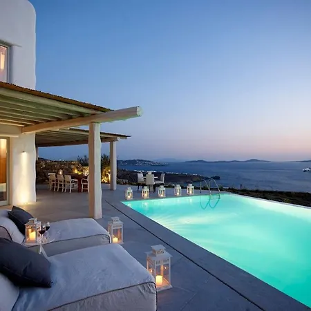 De gesitueerde in Fanari Villa Houlakia Azure Mykonos Sea Views Private Pool Near Mykonos Town heeft een ingerichte kitchenette met een koffie/theezetapparaat, een oven en keukengerei op het terrein. Flaski Restaurant biedt gasten Italiaanse gerechten en ligt op 2 km van de 5-badkamer accommodatie. De dichtstbijzijnde luchthaven is Mikonos, op 5 km afstand van de villa.